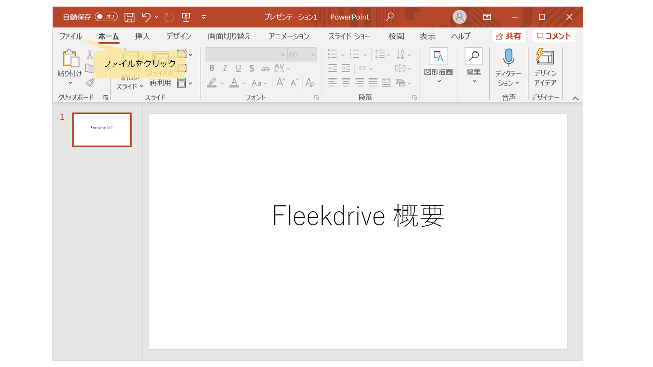 1.「ファイル」をクリックする。