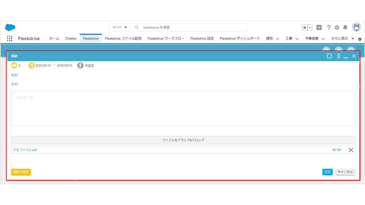 メッセージや宛先を入力して「送信」ボタンをクリックします。