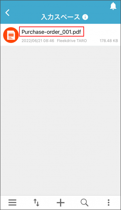 マイスペース内の入力スペースを開き保存済みのファイル名をタップします。